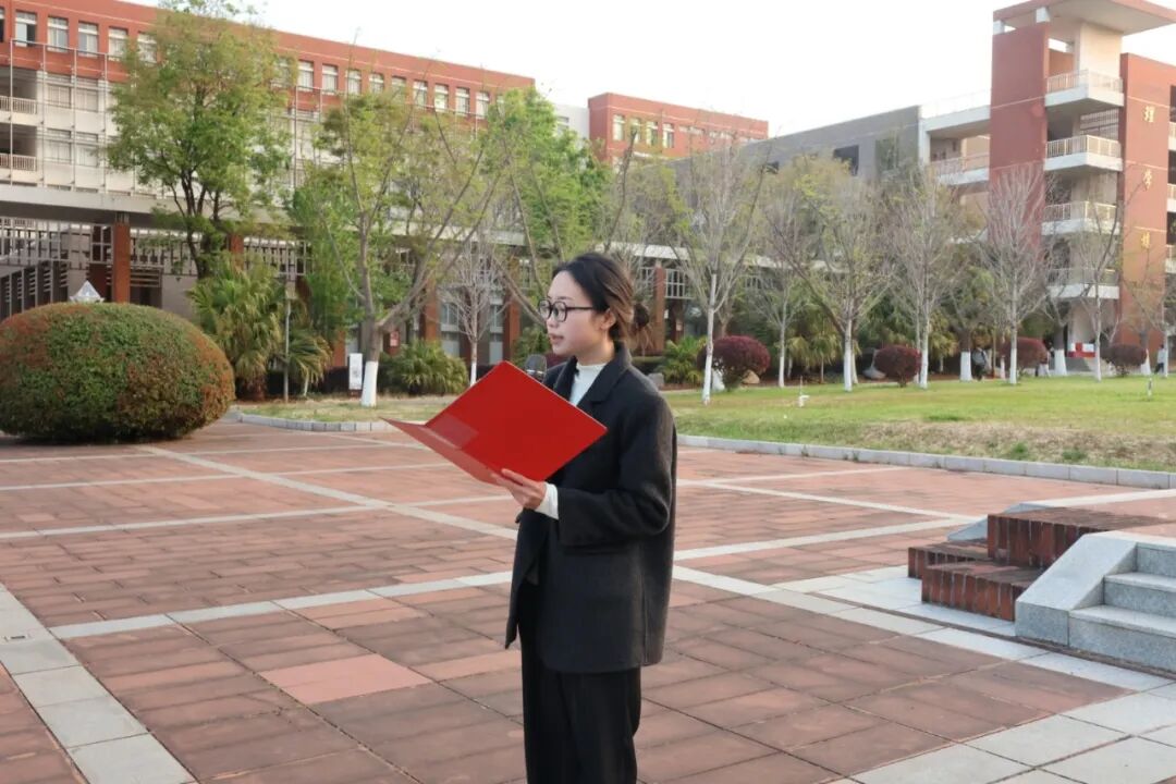 仪式随后进入主题演讲环节。学院优秀学生代表、风园221班陈惠玲同学登上讲台,以《爱国的力量——以青春之名,担时代之责》为题发表演讲。她从国旗承载的厚重历史记忆切入,回望一代代先辈以青春赴家国、用热血铸担当的奋斗历程,紧扣时代命题,生动讲述了同辈青年在科技攻关、支教服务、赛场拼搏等不同赛道上的奋进故事。她号召同学们将爱国情怀融入日常点滴,把课堂专注、实践坚守、追梦实干视为青年担当的最好注脚,让个人理想在国家发展与民族复兴的征程中闪光。