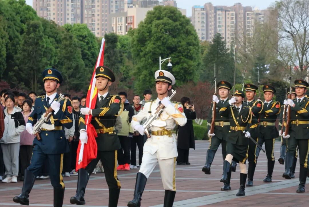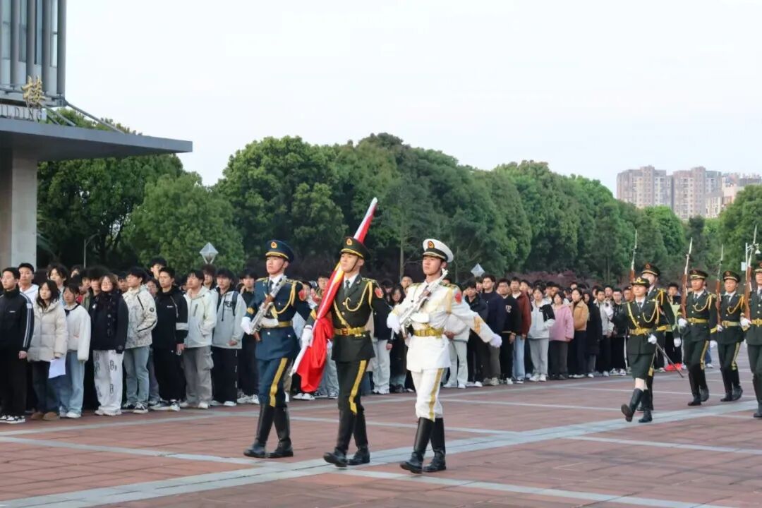 激昂的《中国人民解放军军歌》响彻广场,升国旗仪式正式启幕。伴随着雄壮旋律,鲜艳的五星红旗迎着初升的朝阳缓缓升起。全体师生昂首肃立,行注目礼,齐声高唱国歌。嘹亮的歌声在广场上空久久回荡,每一个音符都承载着对祖国的赤诚热爱,也升腾着属于建规学子的青春自豪。