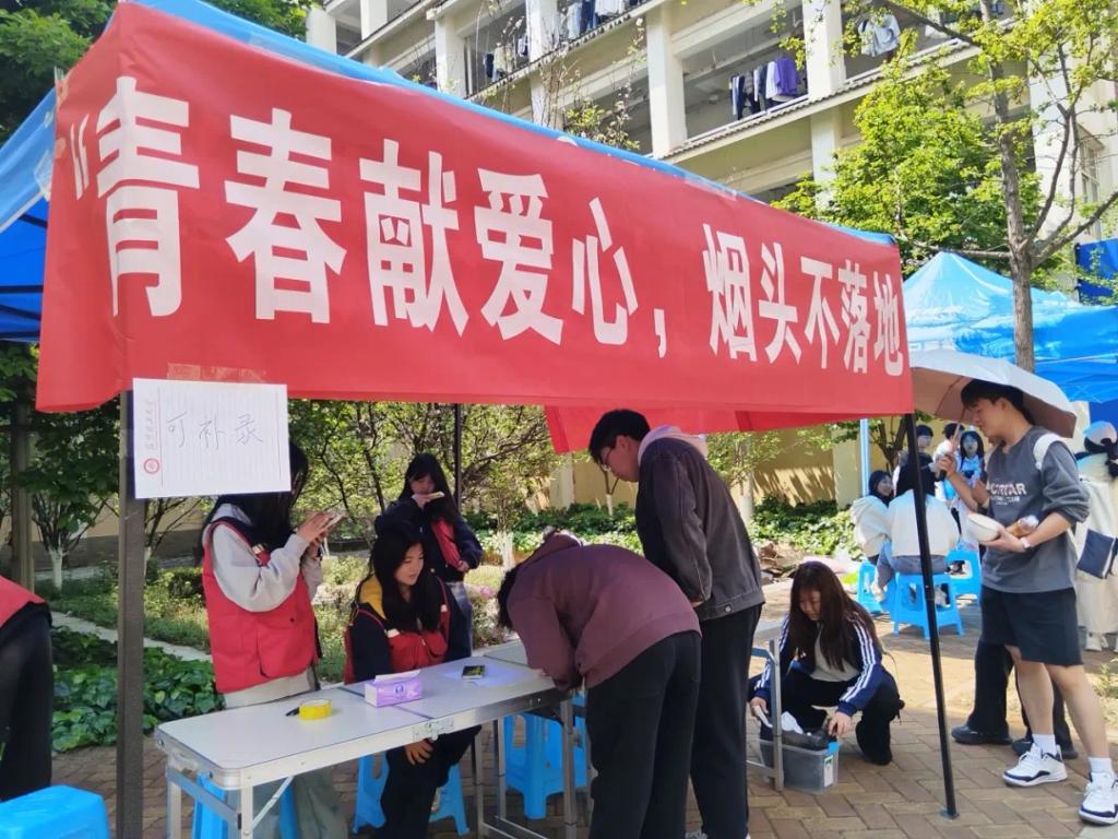 活动当天,志愿者们身着统一服装,带着清洁工具,分组对憬园小广场及周边区域开展烟头清理行动。大家弯腰俯身、仔细搜寻,不放过绿化带、路面缝隙等卫生死角,将散落的烟头逐一捡拾、分类收纳。同时,志愿者们还向过往师生宣传“烟头不落地”的文明理念,科普烟头对生态环境的危害,引导大家从“旁观者”转变为“参与者”,自觉养成爱护环境、低碳生活的良好习惯,营造“人人参与、共建共享”的文明氛围。